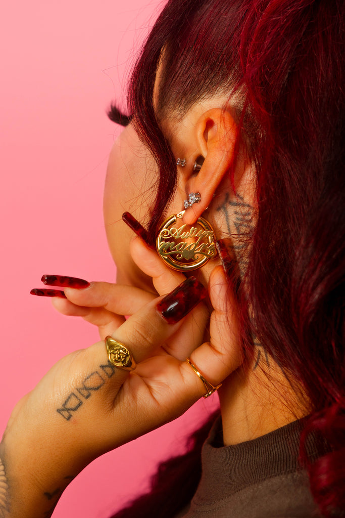 Autism Madre gold hoops