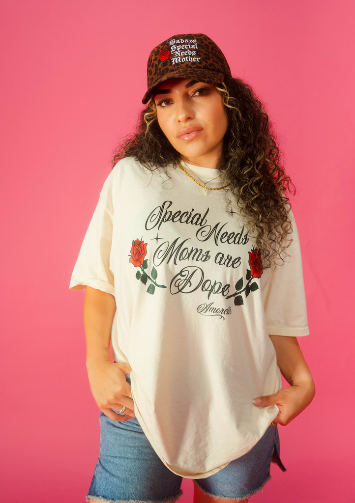 This bold leopard print hat is more than just an accessory — it’s a statement of strength, resilience, and unconditional love. On the front, a beautifully embroidered rose blooms next to the powerful words “Badass Special Needs Mother,” symbolizing both the softness and the strength that define this journey.