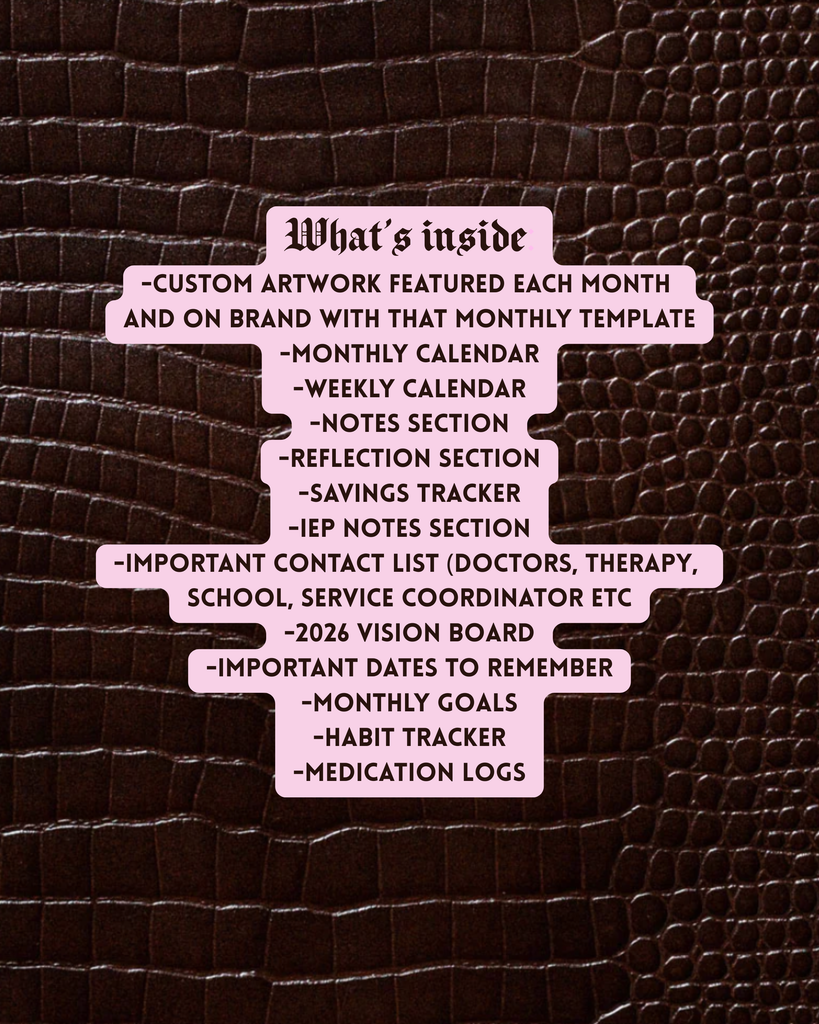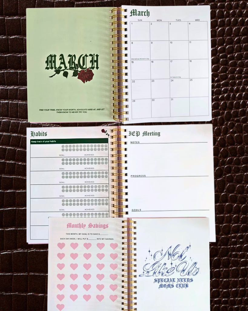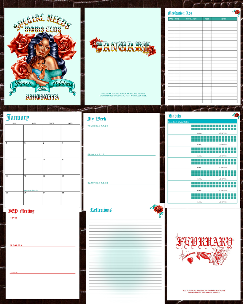 Meet the planner made specifically for special needs moms—a beautifully organized, thoughtfully curated tool that supports the many roles you juggle every single day. Our 2026 Special Needs Moms Planner is spiral bound for durability and easy lay-flat writing, featuring custom artwork each month that aligns with the theme of your monthly template. Sized at 7.24" x 9.25", it’s portable enough for your bag yet spacious enough for comfortable daily use. This isn’t just a planner—it’s your companion for clarity, advocacy, balance, and peace of mind.